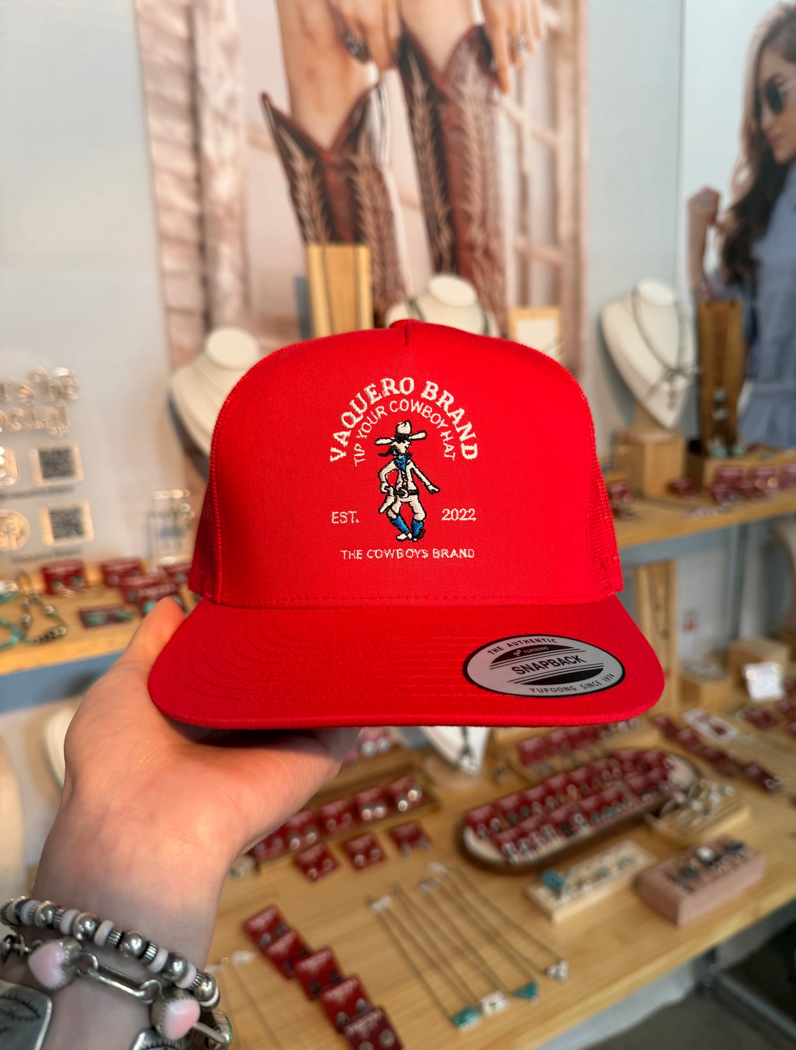REd cap with white & blue logo.